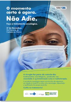 O momento certo é agora. Não adie. Faça o tratamento oncológico.