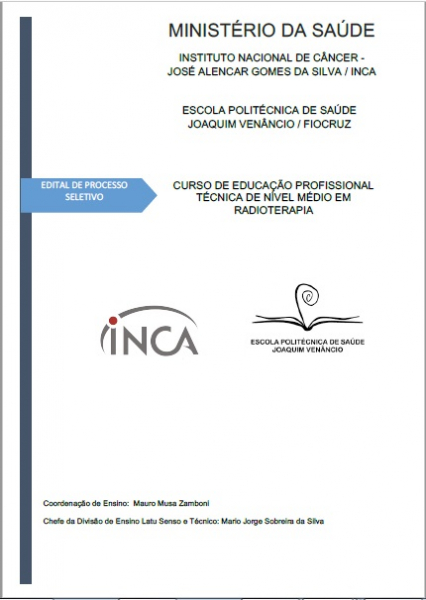 Edital do Processo Seletivo 2018 - Curso de Educação Profissional Técnica de Nível Médio: Especialização em Radioterapia