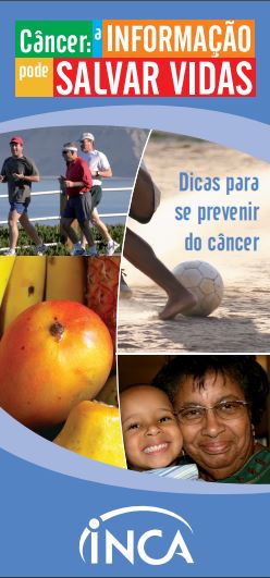 Folheto Câncer: a informação pode salvar vidas - Dicas para se prevenir do câncer, elaborado pela Coordenação de Prevenção e Controle do Câncer do INCA.