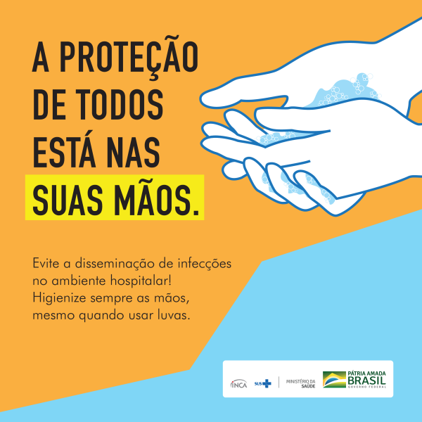 Card para WhatsApp da campanha de Higiene das Mãos do INCA, cujo foco foi o uso adequado de luvas.