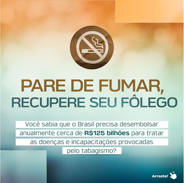 Carrossel 2 — Você sabia que o Brasil precisa desembolsar anualmente cerca de R$ 125 bilhões para tratar as doenças e incapacitações provocadas pelo tabagismo?